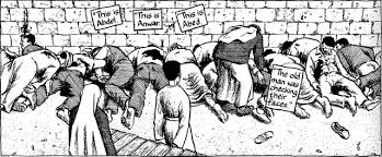 Joe Sacco draws lot of pictures of Israel in discussing the Israeli-Arab conflict in a voluminous graphic art book called "Footnotes In Gaza". Sacco draws the story of the city of Rafah which is a town of total squalor in the Gaza Strip where rubble buildings and narrow streets is the environment of thousands of Palestinians driven from their land into this narrow strip of land. Sacco draws up the story that he personally investigated and went to see which was a massacre of hundreds of Palestinians in the 1956 story and this is basically this 400 page book. It clearly must of taken Joe Sacco much time to draw and write this book as he immerses himself into daily modern Rafah trying to uncover witnesses and clues to this event long forgotten in history.