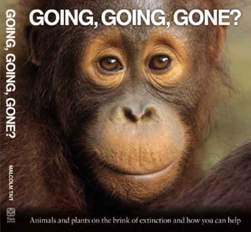 Malcolm Tait has written a disconcerting book about the top one hundred species most threaten with extinction called "Going Going Gone?' This work draws on knowledge and work of the major top conservation groups around the world informing the public of these species which are threatened mainly due to human activity. This depressing book shows many incredible plant, bird, animal, and fish species who have seen their numbers dramatically drop in recent years from either deforestation of habitat, neurotic meat hunting by locals, or commercial over-fishing and slaughter on the seas. There are hundreds of books of this subject matter but this is a great way to quickly flip through and check out the top global species witnessing a dramatic uptick of pressure for their survival and very ability to remain in nature