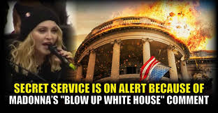 Make no mistake that Madonna's threat was either a secret message from the Hollywood left to the Saudi Mecca right to do something for them or just a dumb wish and expression to domestic enemies of Donald Trump and America wishing to do hell and are not mentally well and able to take political defeat gracefully and willingly. Madonna was full of hate and played the victim because her candidate lost the election in a political democratic ritual that all people get a vote in and not just the ones who share her diversity and progressive agenda. this is a woman that has done as much as she could in the entertainment industry to bring about fear and loathing for the status quo and now that other operatives have achieved the same tactic this bitch is crying over spilled milk and wishing to see radical terrorism hit the White House. This woman should be one of the first prisoners of the new system and regime as she basically was calling out for a revolution and an attack on America.